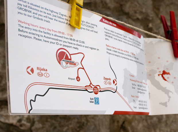 Već od 1978. godine Automotodrom Grobnik je poznat po adrenalinskom ugođaju. Profesionalni timovi iz Hrvatske i cijele Europe dolaze na testiranja, treninge i utrke. Za svih njih izradili smo dvojezičnu brošuru sa detaljnim informacijama o samoj stazi, sadržajima u sklopu nje te godišnji raspored manifestacija.