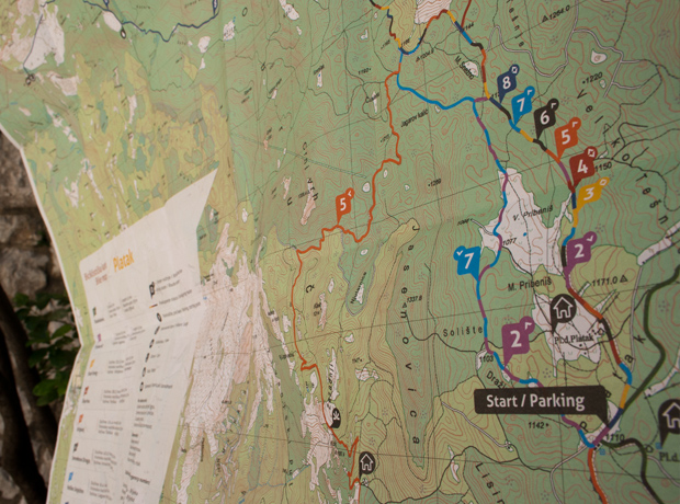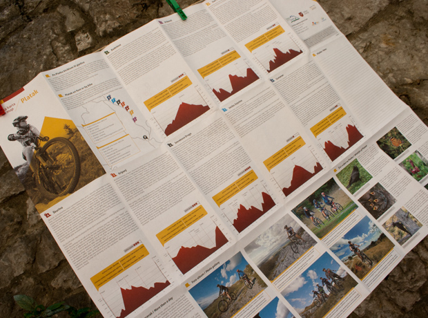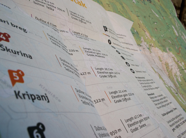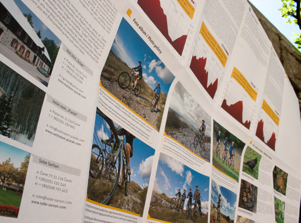 Na kartu smo ucrtali 190 km staza te svaku od njih osam obilježili svojom bojom, definirali težine i važne lokacije. Biciklističkoj karti smo pridružili fotografije i informacije o biljnom i životinjskom svijetu okolice Platka i Nacionalnog parka Risnjak.
