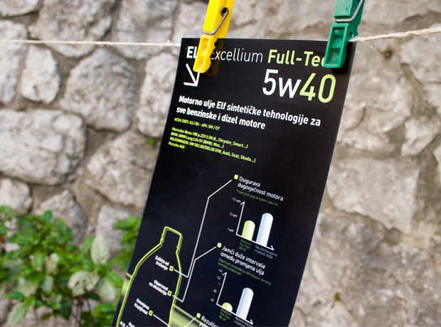 Iz te suradnje proizašao je niz reklamnih rješenja: novinski oglasi, plakati, kalendari, poslovne mape, stolni blokovi, letci, vizuali za oslikavanje službenih vozila, lokalizacije međunarodnih kampanja tvrtke ELF.