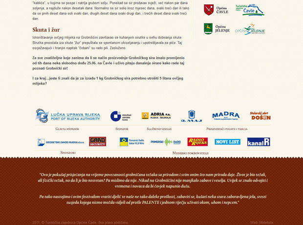 Imamo i mi svoju ovcu za utrku! I to već pet godina za redom. Festival palente i sira već je tradicionalna manifestacija koja se održava zadnjeg vikenda u lipnju. Posjetiteljima se pruža prilika svjedočiti pripremi velike palente kompirice, koju potom mogu i probati uz nezaobilazni grobnički sir.