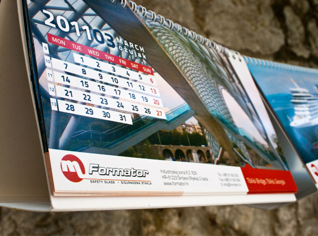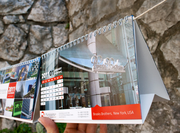 Za 2011. godinu dizajnirali smo i grafički pripremili stolni kalendar sa prikazom top 12 projekata, objekata diljem svijeta, u koje su ugrađeni njihovi proizvodi.