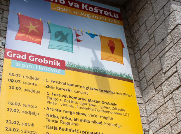 Ljeto se vratilo u Kaštel Grada Grobnika. Poznati umjetnici i zabavljači garantiraju dobru zabavu i osvježenje. Dizajnirali smo jedan potpuno ljetni billboard i vizualni dio dodatno naglasili sloganom. Pozvali smo prolaznike da dođu u Kaštel na neku od priredbi “dok im se šugamani suše”.
